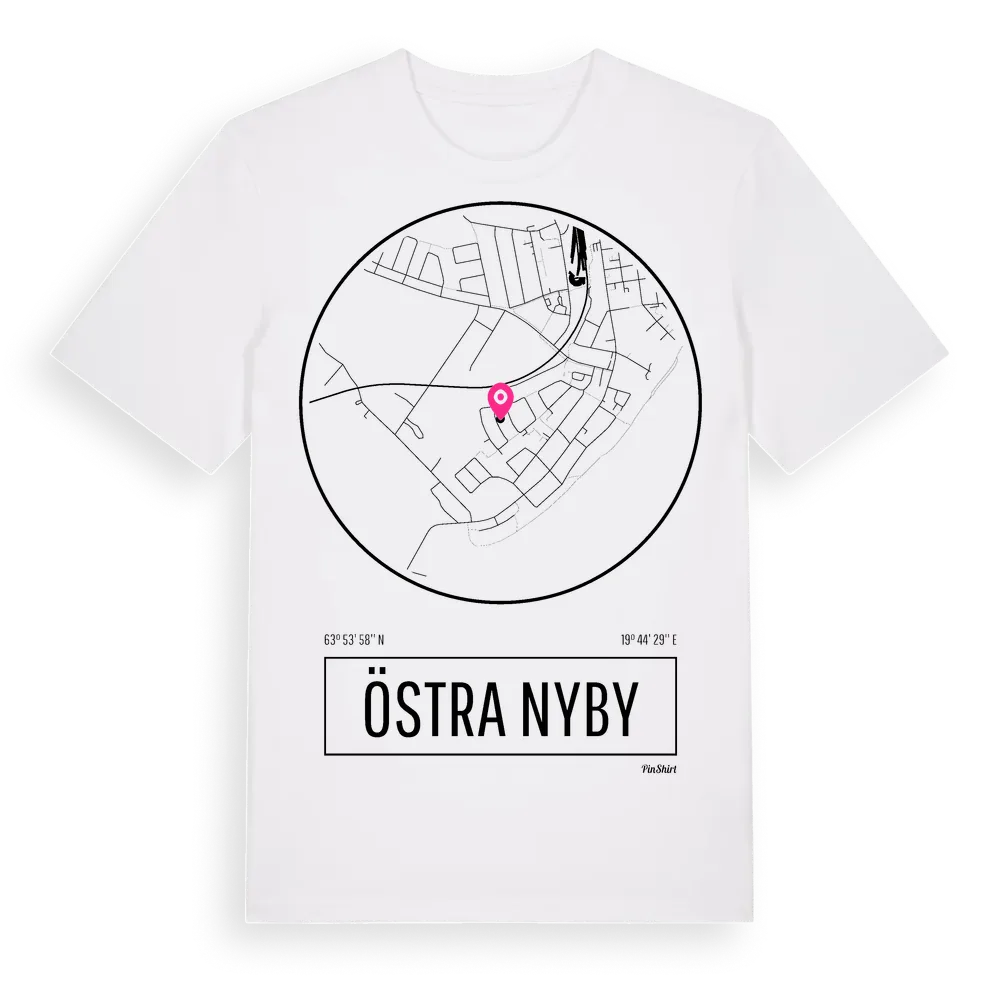 Ett rent, runt tryck med Östra Nybys namn. Minimalistiskt och stilrent – perfekt för den som känner platsen utan att skrika det. Premium bomull, unisex – från stadsdelen Östra Nyby i Västerbottens län.