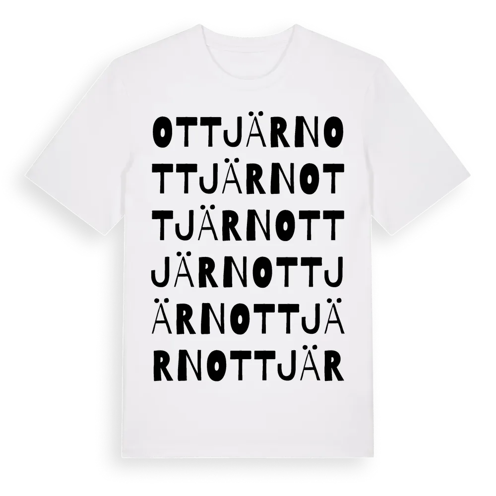 Ottjärn ordlek t-shirt är inspirerad av byn Ottjärn i Västerbottens län, Sverige. Tröjan är designad för dig som har en speciell koppling till platsen – oavsett om du bor här, har rötterna här eller bara älskar Ottjärn.