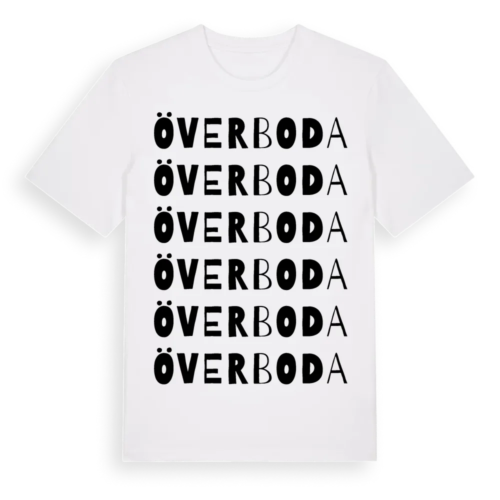 Överboda ordlek t-shirt är inspirerad av byn Överboda i Västerbottens län, Sverige. Tröjan är designad för dig som har en speciell koppling till platsen – oavsett om du bor här, har rötterna här eller bara älskar Överboda.