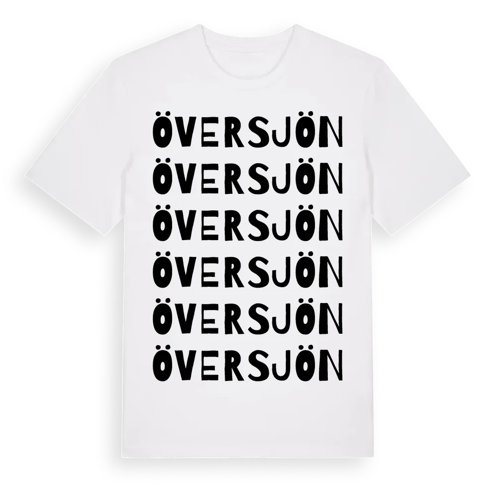Översjön ordlek t-shirt är inspirerad av Översjön i Västerbottens län, Sverige. Tröjan är designad för dig som har en speciell koppling till platsen – oavsett om du bor här, har rötterna här eller bara älskar Översjön.