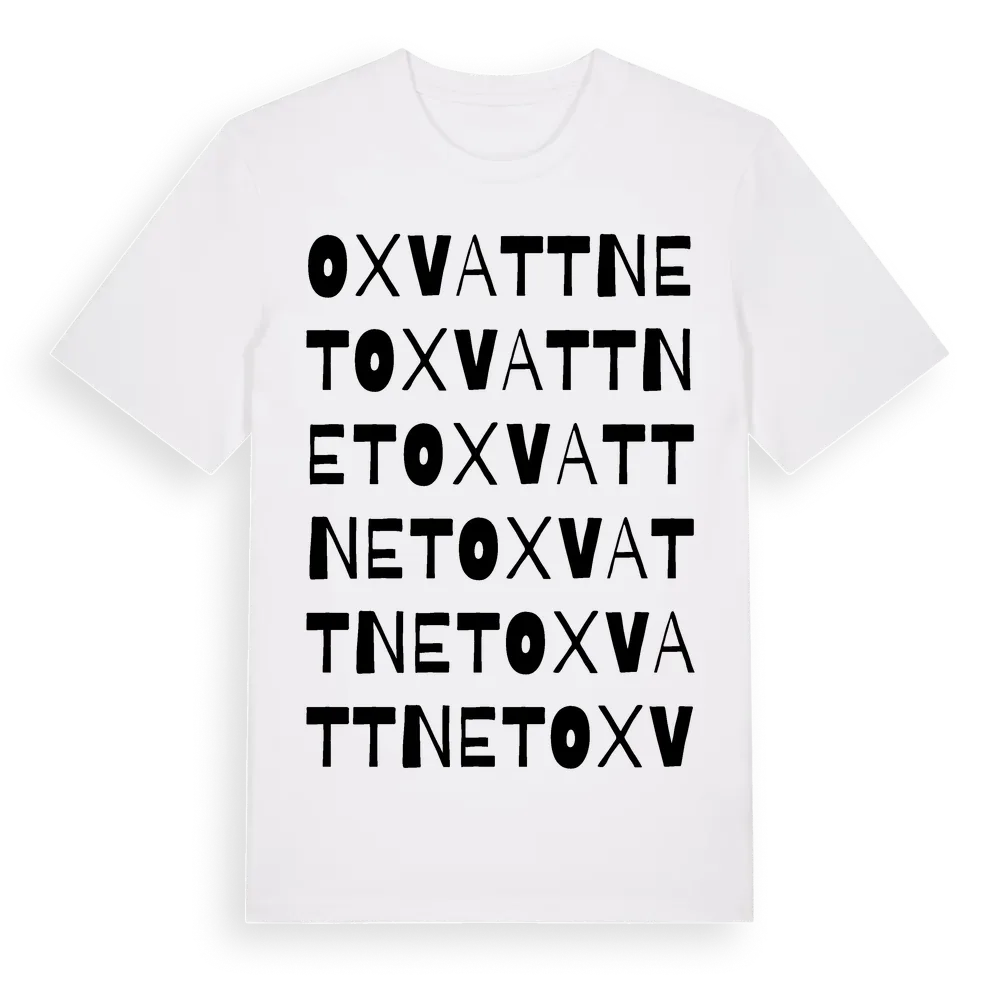 Oxvattnet ordlek t-shirt är inspirerad av byn Oxvattnet i Västerbottens län, Sverige. Tröjan är designad för dig som har en speciell koppling till platsen – oavsett om du bor här, har rötterna här eller bara älskar Oxvattnet.