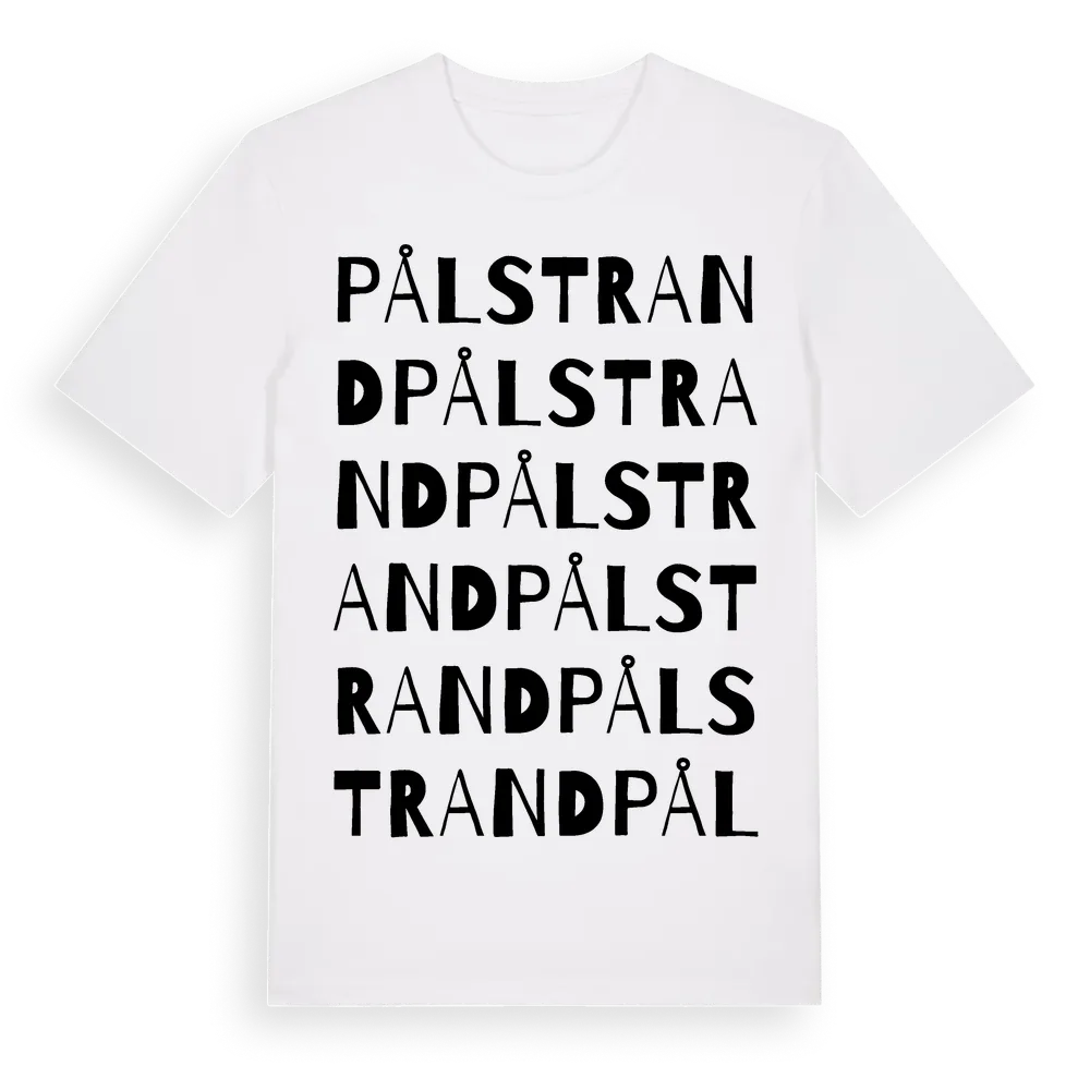 Pålstrand ordlek t-shirt är inspirerad av byn Pålstrand i Västerbottens län, Sverige. Tröjan är designad för dig som har en speciell koppling till platsen – oavsett om du bor här, har rötterna här eller bara älskar Pålstrand.