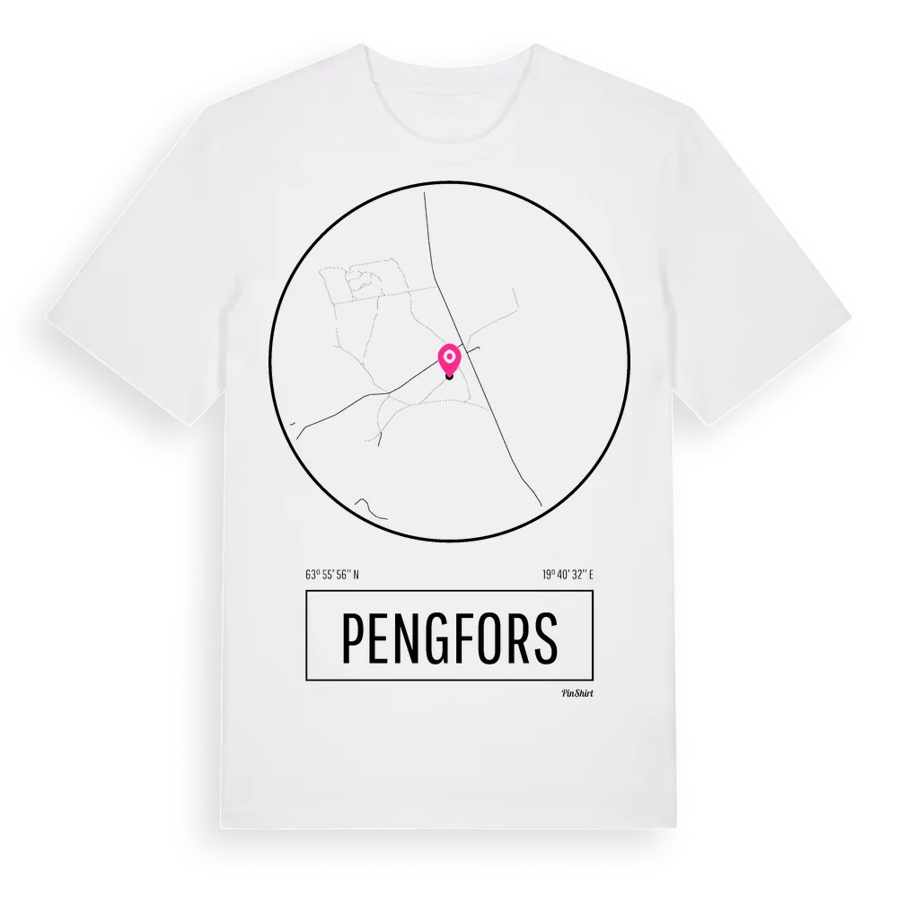 Pengfors t-shirt är inspirerad av byn Pengfors i Västerbottens län, Sverige. Tröjan är designad för dig som har en speciell koppling till platsen – oavsett om du bor här, har rötterna här eller bara älskar Pengfors.