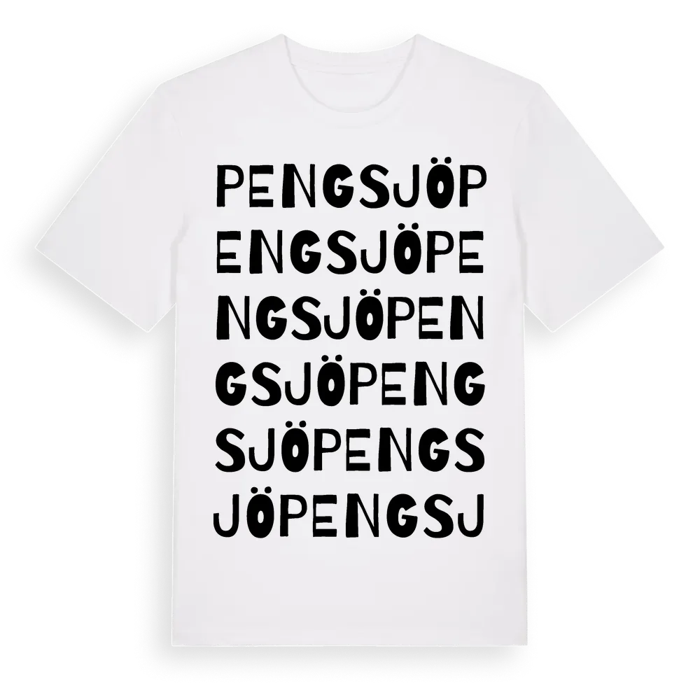Pengsjö ordlek t-shirt är inspirerad av byn Pengsjö i Västerbottens län, Sverige. Tröjan är designad för dig som har en speciell koppling till platsen – oavsett om du bor här, har rötterna här eller bara älskar Pengsjö.