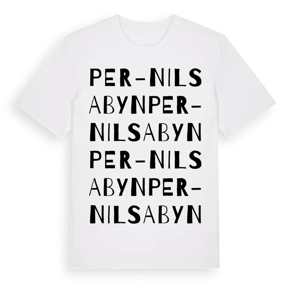 Per-Nilsabyn ordlek t-shirt är inspirerad av byn Per-Nilsabyn i Västerbottens län, Sverige. Tröjan är designad för dig som har en speciell koppling till platsen – oavsett om du bor här, har rötterna här eller bara älskar Per-Nilsabyn.