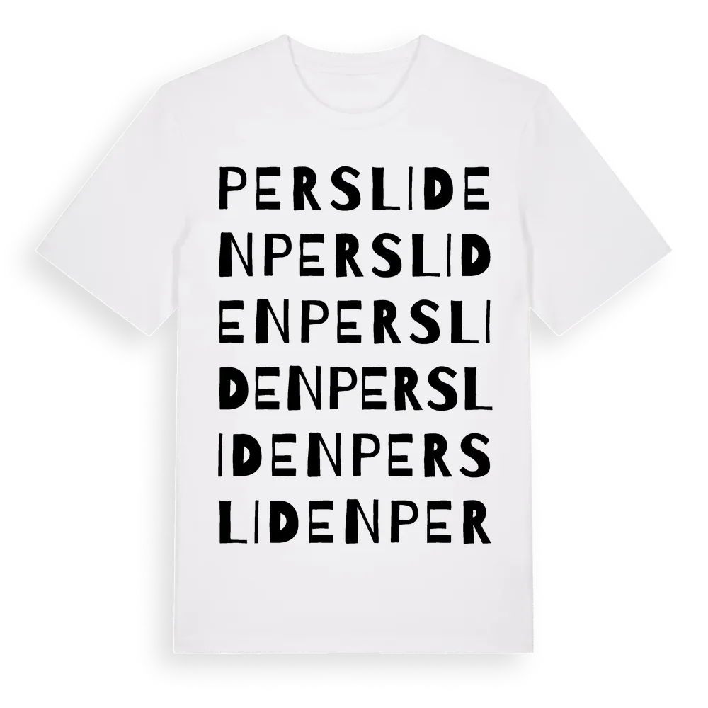En ordlek byggd på Perslidens namn. Subtilt och klurig – ett motiv som bara de som verkligen känner platsen fullt ut förstår. Premium bomull, unisex – från Persliden i Västerbottens län.