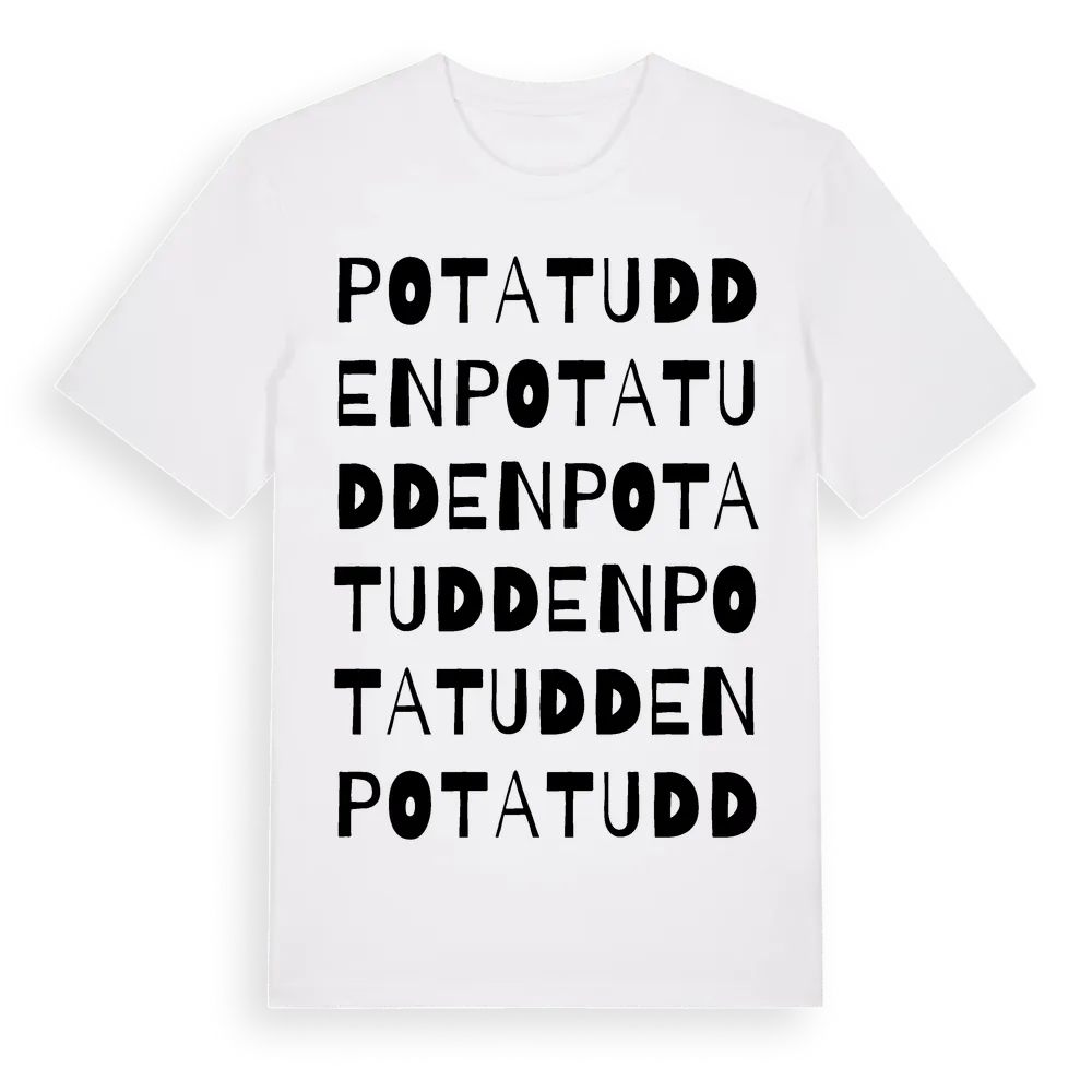 En ordlek byggd på Potatuddens namn. Subtilt och klurig – ett motiv som bara de som verkligen känner platsen fullt ut förstår. Premium bomull, unisex – från Potatudden i Västerbottens län.