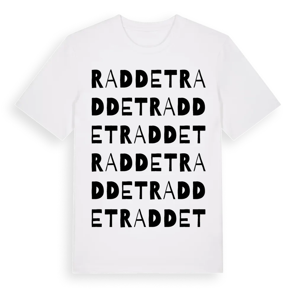Raddet ordlek t-shirt är inspirerad av Raddet i Västerbottens län, Sverige. Tröjan är designad för dig som har en speciell koppling till platsen – oavsett om du bor här, har rötterna här eller bara älskar Raddet.