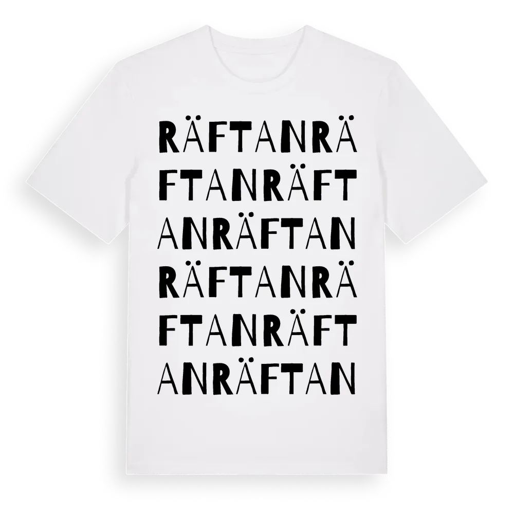 Räftan ordlek t-shirt är inspirerad av byn Räftan i Västerbottens län, Sverige. Tröjan är designad för dig som har en speciell koppling till platsen – oavsett om du bor här, har rötterna här eller bara älskar Räftan.
