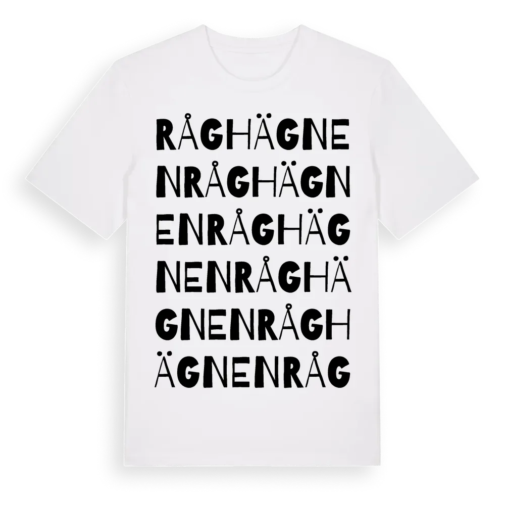 Råghägnen ordlek t-shirt är inspirerad av Råghägnen i Västerbottens län, Sverige. Tröjan är designad för dig som har en speciell koppling till platsen – oavsett om du bor här, har rötterna här eller bara älskar Råghägnen.