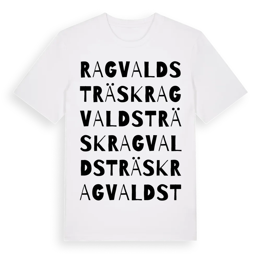 Ragvaldsträsk ordlek t-shirt är inspirerad av byn Ragvaldsträsk i Västerbottens län, Sverige. Tröjan är designad för dig som har en speciell koppling till platsen – oavsett om du bor här, har rötterna här eller bara älskar Ragvaldsträsk.