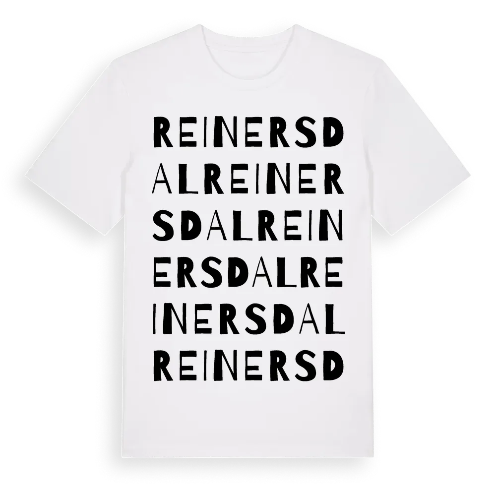Reinersdal ordlek t-shirt är inspirerad av Reinersdal i Västerbottens län, Sverige. Tröjan är designad för dig som har en speciell koppling till platsen – oavsett om du bor här, har rötterna här eller bara älskar Reinersdal.