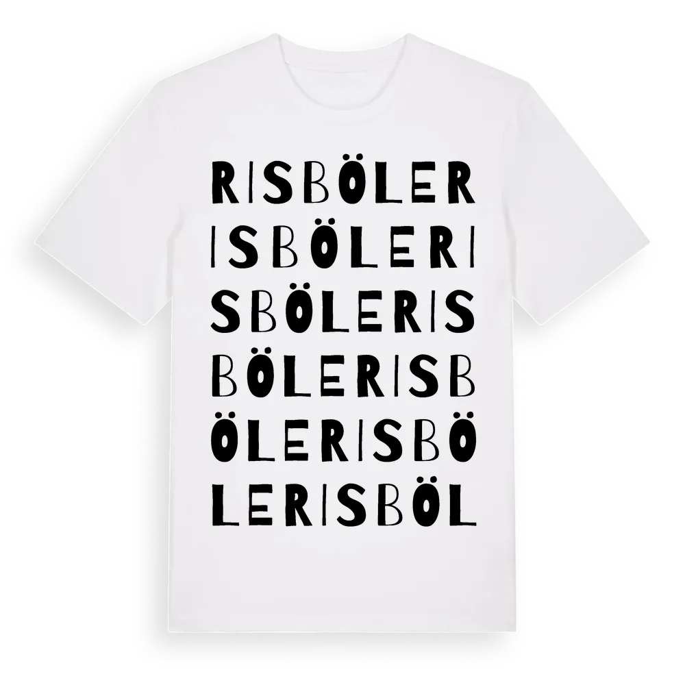 En ordlek byggd på Risböles namn. Subtilt och klurig – ett motiv som bara de som verkligen känner platsen fullt ut förstår. Premium bomull, unisex – från byn Risböle i Västerbottens län.