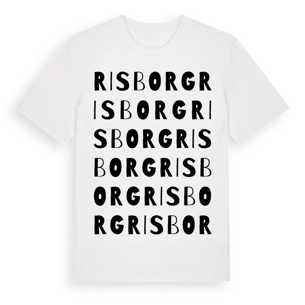 Risborg ordlek t-shirt är inspirerad av Risborg i Västerbottens län, Sverige. Tröjan är designad för dig som har en speciell koppling till platsen – oavsett om du bor här, har rötterna här eller bara älskar Risborg.