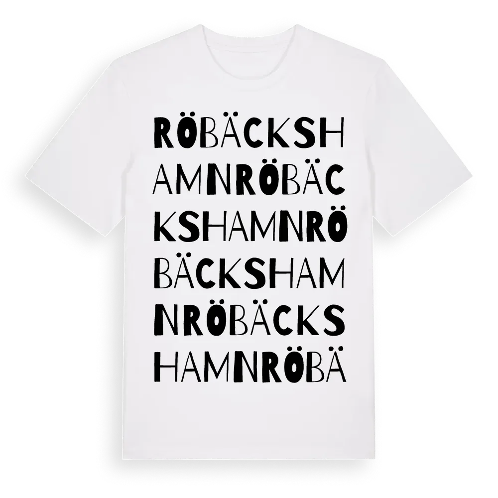 Röbäckshamn ordlek t-shirt är inspirerad av Röbäckshamn i Västerbottens län, Sverige. Tröjan är designad för dig som har en speciell koppling till platsen – oavsett om du bor här, har rötterna här eller bara älskar Röbäckshamn.