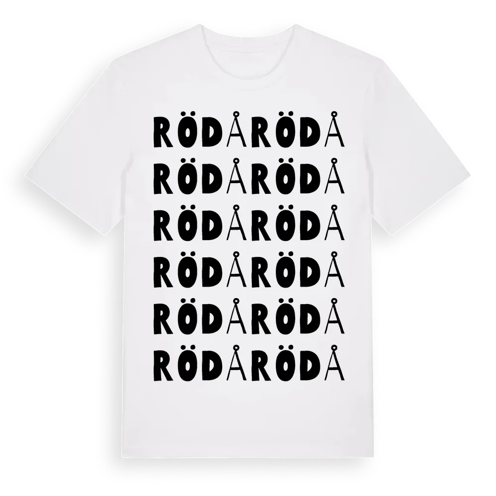 Rödå ordlek t-shirt är inspirerad av byn Rödå i Västerbottens län, Sverige. Tröjan är designad för dig som har en speciell koppling till platsen – oavsett om du bor här, har rötterna här eller bara älskar Rödå.