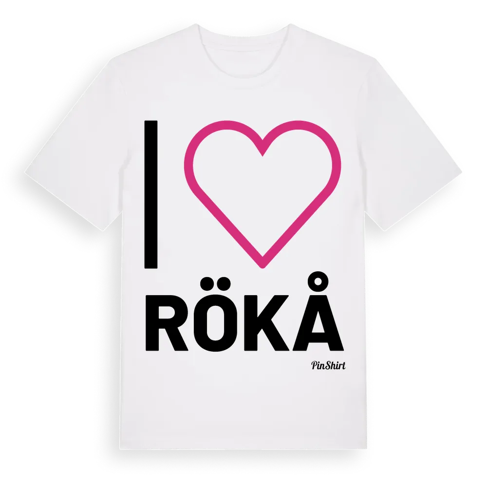 Det klassiska "I ❤ Rökå"-motivet i stort format som täcker hela bröstet. För dig som vill visa kärleken till Rökå på riktigt. Premium bomull, unisex – från byn Rökå i Västerbottens län.