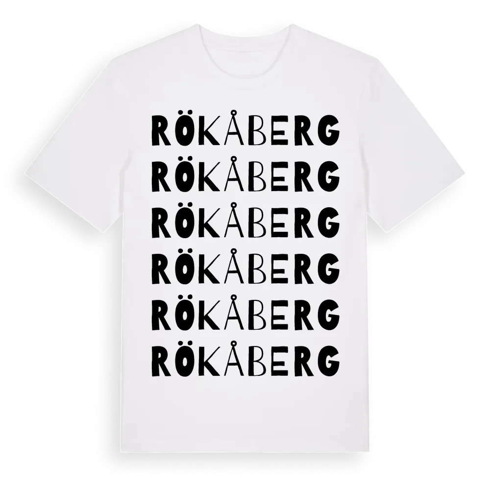 Rökåberg ordlek t-shirt är inspirerad av byn Rökåberg i Västerbottens län, Sverige. Tröjan är designad för dig som har en speciell koppling till platsen – oavsett om du bor här, har rötterna här eller bara älskar Rökåberg.