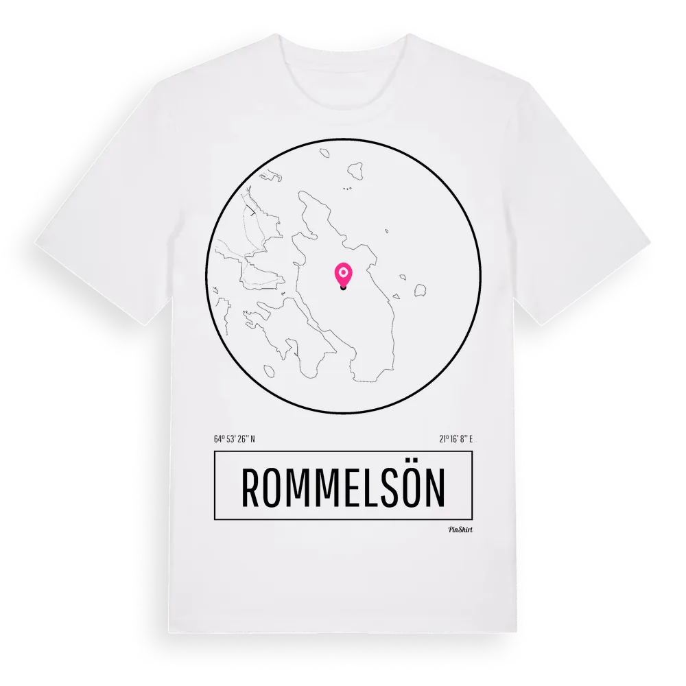 Rommelsön t-shirt är inspirerad av ön Rommelsön i Västerbottens län, Sverige. Tröjan är designad för dig som har en speciell koppling till platsen – oavsett om du bor här, har rötterna här eller bara älskar Rommelsön.