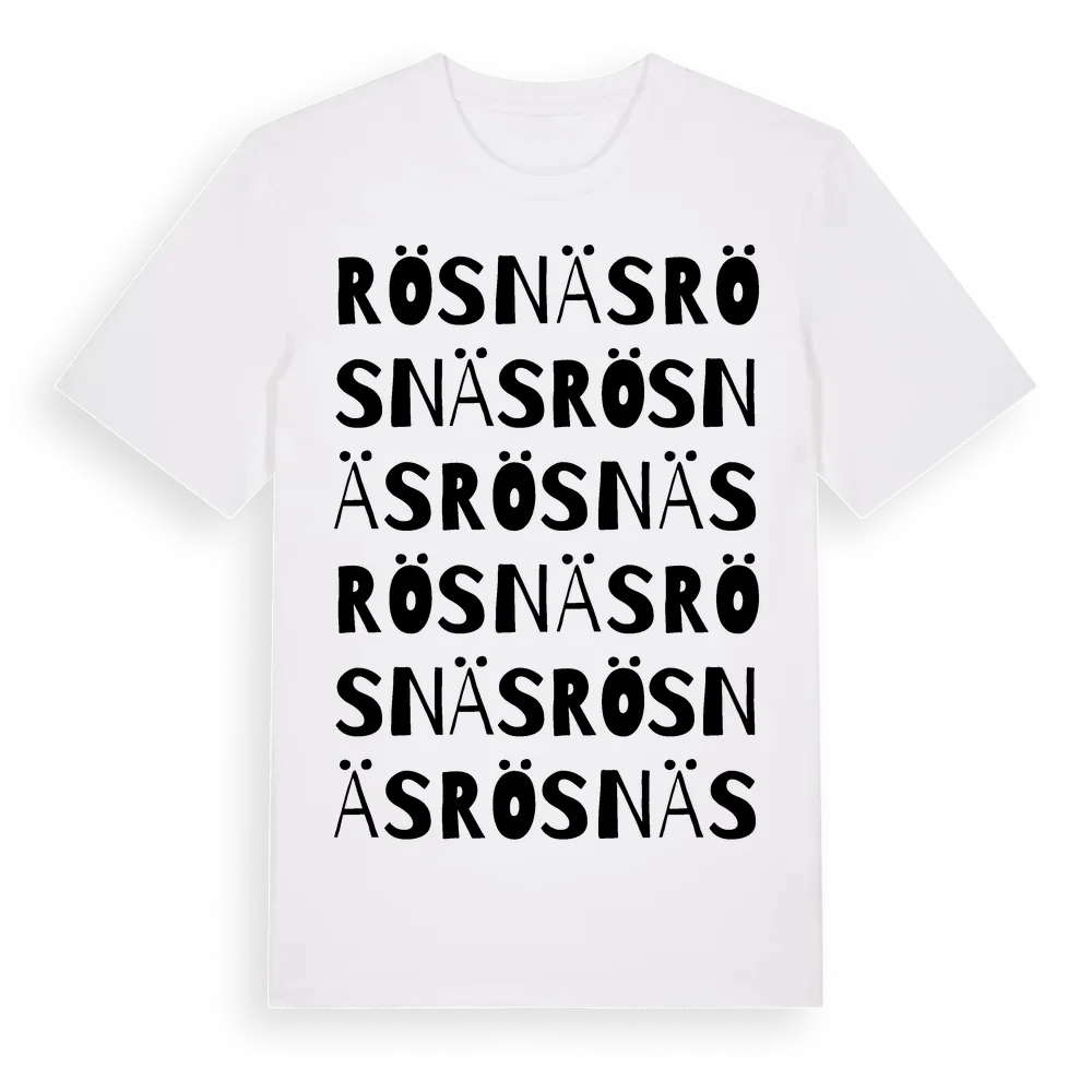Rösnäs ordlek t-shirt är inspirerad av byn Rösnäs i Västerbottens län, Sverige. Tröjan är designad för dig som har en speciell koppling till platsen – oavsett om du bor här, har rötterna här eller bara älskar Rösnäs.