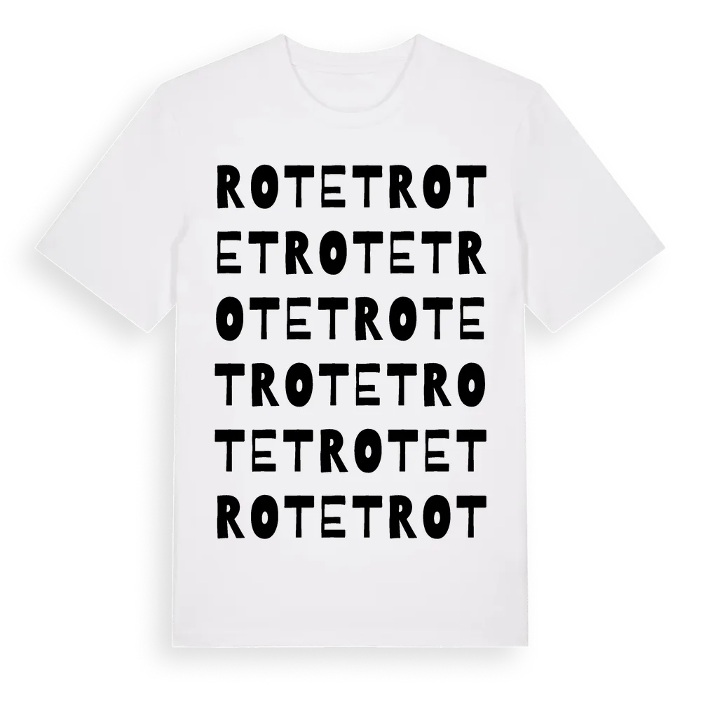 En ordlek byggd på Rotets namn. Subtilt och klurig – ett motiv som bara de som verkligen känner platsen fullt ut förstår. Premium bomull, unisex – från Rotet i Västerbottens län.