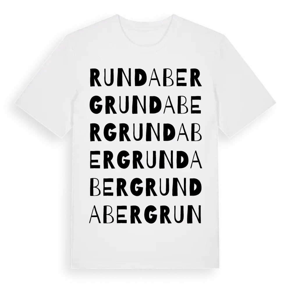 Rundaberg ordlek t-shirt är inspirerad av Rundaberg i Västerbottens län, Sverige. Tröjan är designad för dig som har en speciell koppling till platsen – oavsett om du bor här, har rötterna här eller bara älskar Rundaberg.