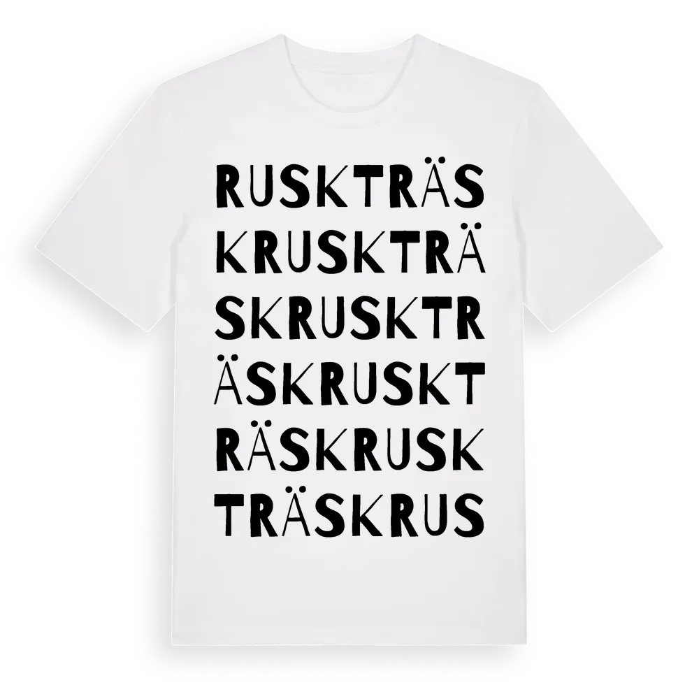 Ruskträsk ordlek t-shirt är inspirerad av byn Ruskträsk i Västerbottens län, Sverige. Tröjan är designad för dig som har en speciell koppling till platsen – oavsett om du bor här, har rötterna här eller bara älskar Ruskträsk.