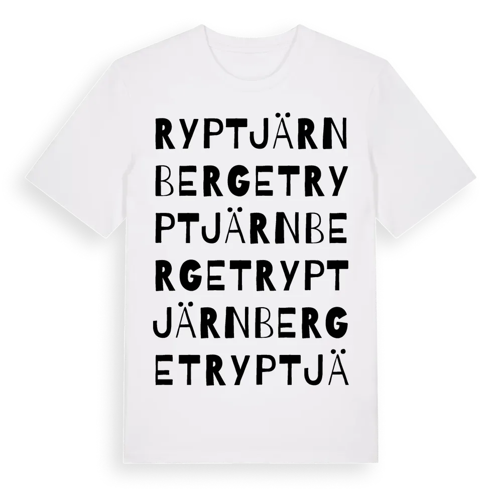 Ryptjärnberget ordlek t-shirt är inspirerad av Ryptjärnberget i Västerbottens län, Sverige. Tröjan är designad för dig som har en speciell koppling till platsen – oavsett om du bor här, har rötterna här eller bara älskar Ryptjärnberget.