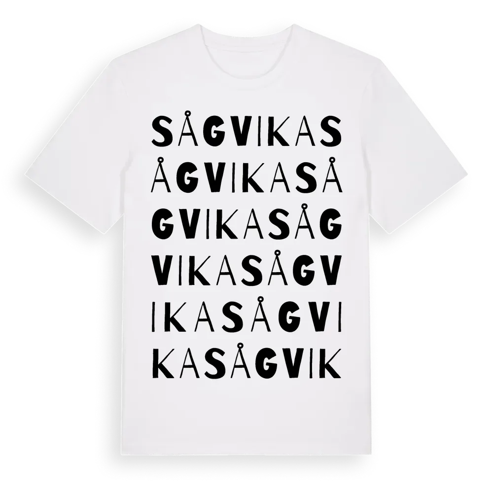 Sågvika ordlek t-shirt är inspirerad av Sågvika i Västerbottens län, Sverige. Tröjan är designad för dig som har en speciell koppling till platsen – oavsett om du bor här, har rötterna här eller bara älskar Sågvika.