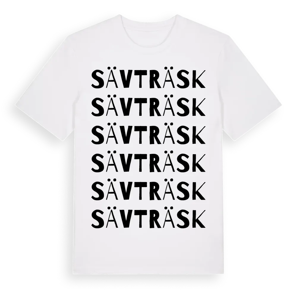Sävträsk ordlek t-shirt är inspirerad av Sävträsk i Västerbottens län, Sverige. Tröjan är designad för dig som har en speciell koppling till platsen – oavsett om du bor här, har rötterna här eller bara älskar Sävträsk.