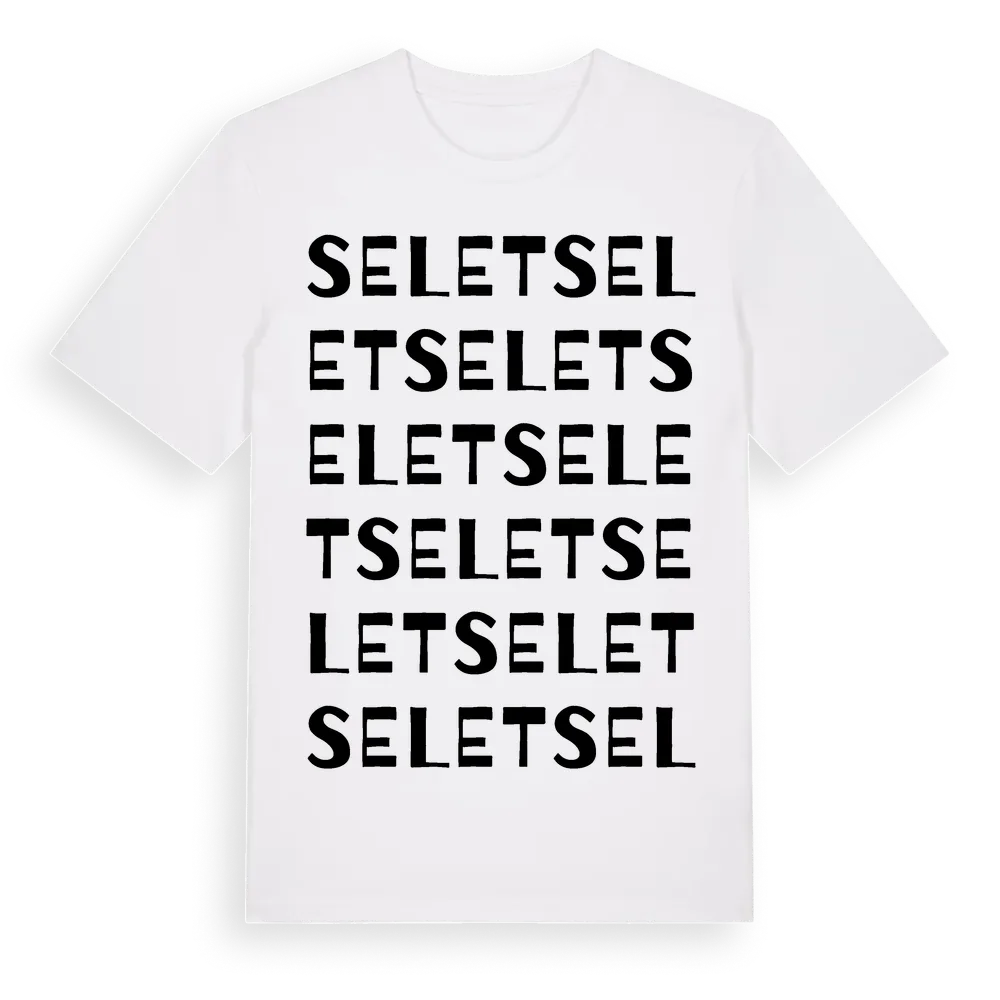 Selet ordlek t-shirt är inspirerad av byn Selet i Västerbottens län, Sverige. Tröjan är designad för dig som har en speciell koppling till platsen – oavsett om du bor här, har rötterna här eller bara älskar Selet.