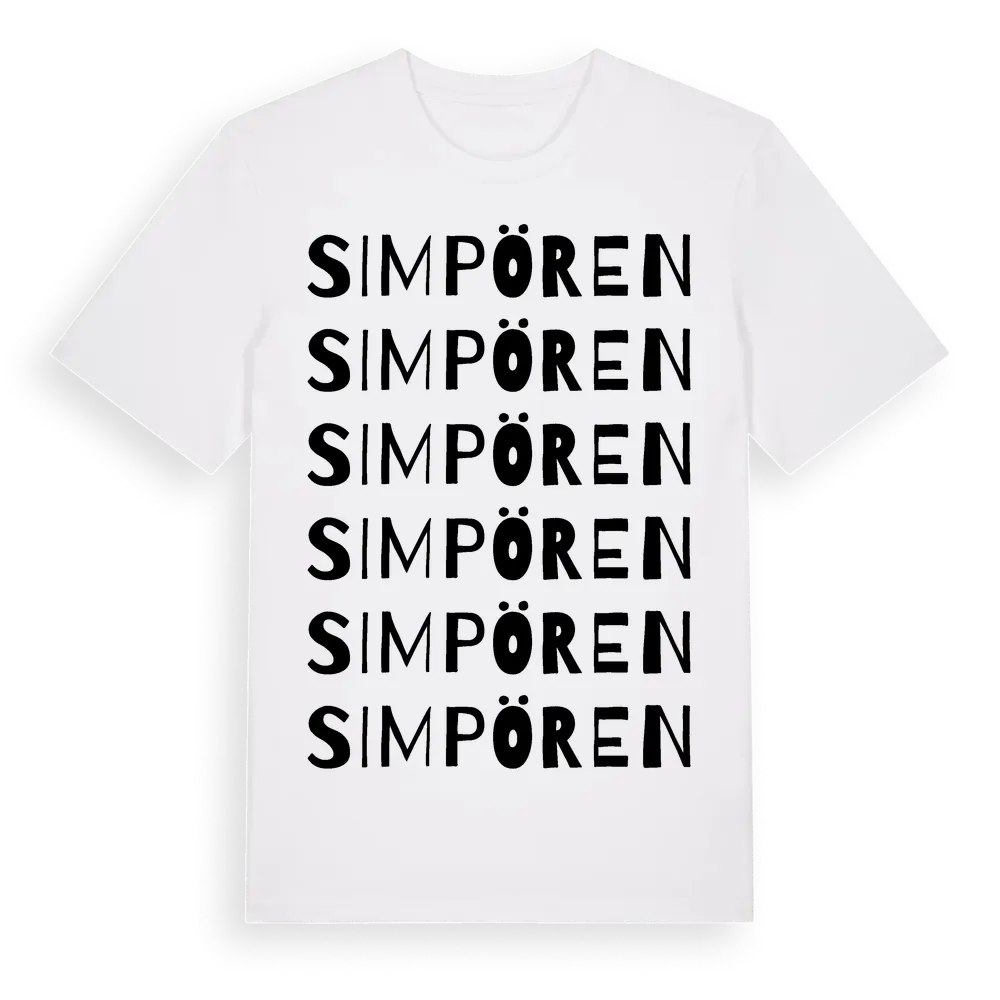 En ordlek byggd på Simpörens namn. Subtilt och klurig – ett motiv som bara de som verkligen känner platsen fullt ut förstår. Premium bomull, unisex – från Simpören i Västerbottens län.