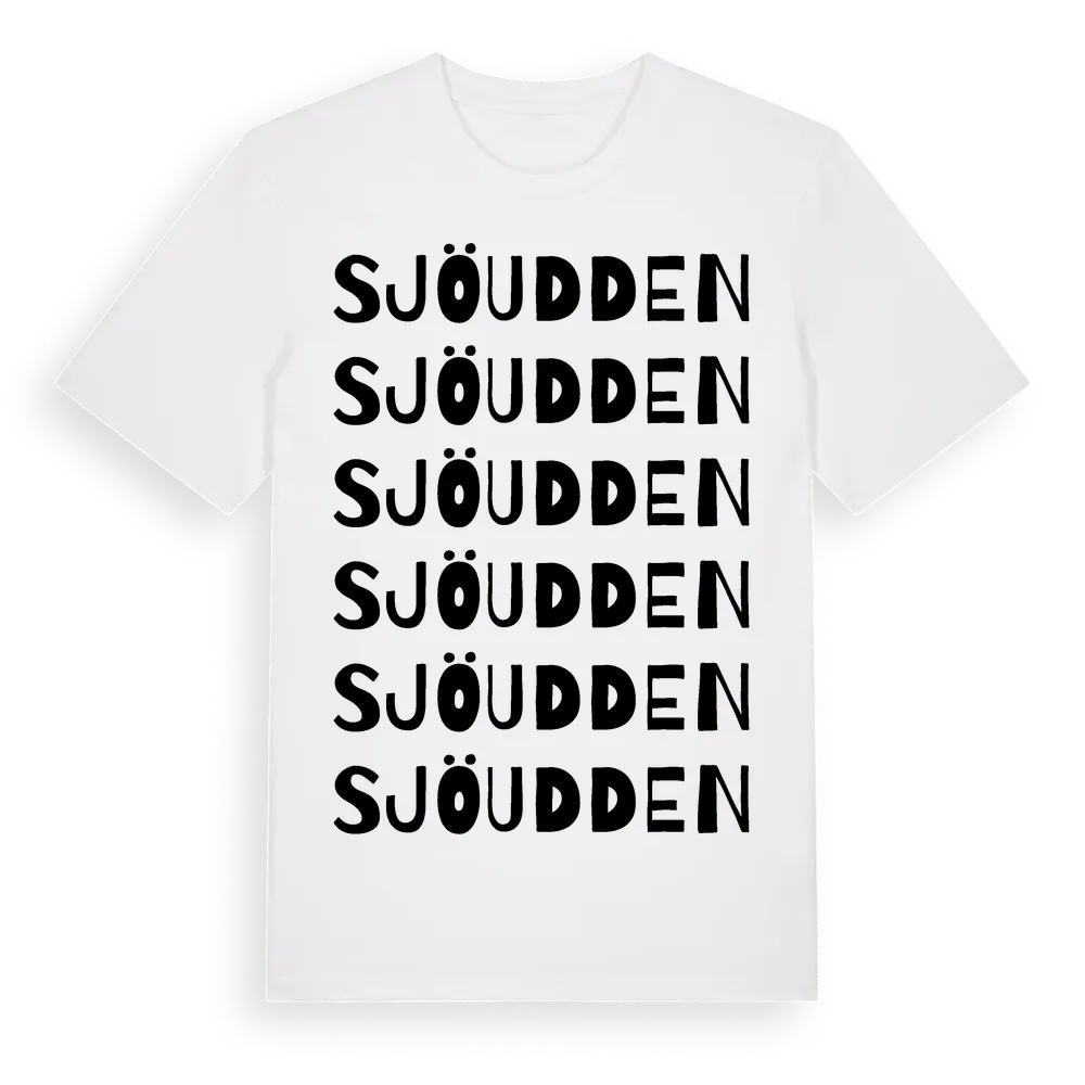 Sjöudden ordlek t-shirt är inspirerad av Sjöudden i Västerbottens län, Sverige. Tröjan är designad för dig som har en speciell koppling till platsen – oavsett om du bor här, har rötterna här eller bara älskar Sjöudden.