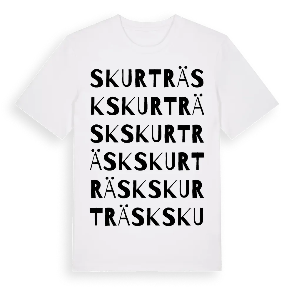 Skurträsk ordlek t-shirt är inspirerad av byn Skurträsk i Västerbottens län, Sverige. Tröjan är designad för dig som har en speciell koppling till platsen – oavsett om du bor här, har rötterna här eller bara älskar Skurträsk.