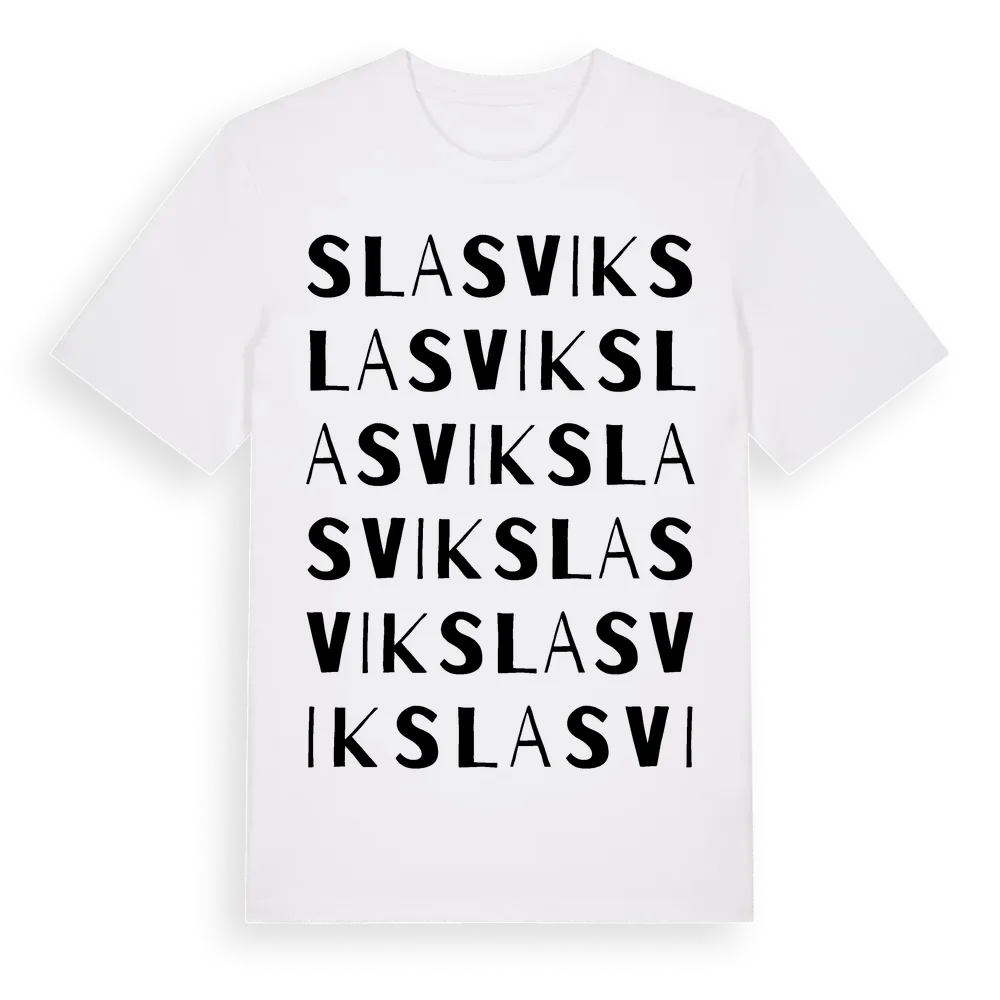 Slasvik ordlek t-shirt är inspirerad av Slasvik i Västerbottens län, Sverige. Tröjan är designad för dig som har en speciell koppling till platsen – oavsett om du bor här, har rötterna här eller bara älskar Slasvik.