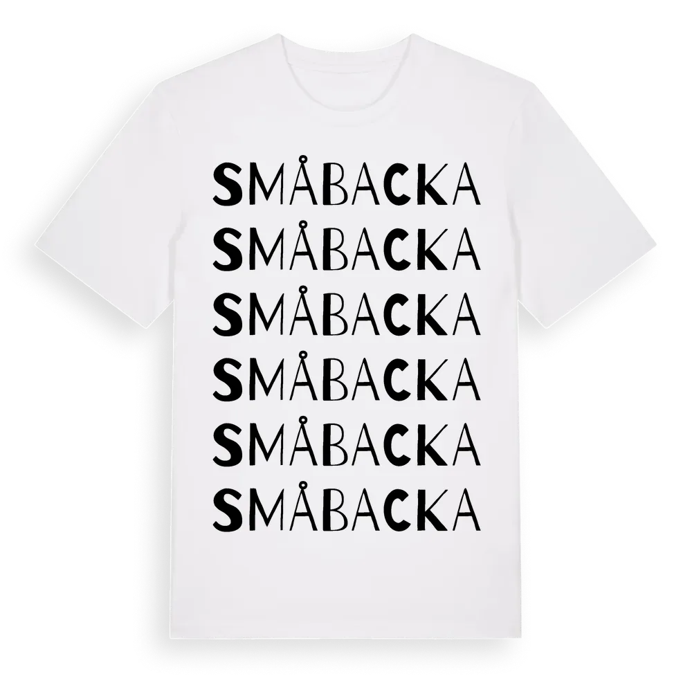 Småbacka ordlek t-shirt är inspirerad av Småbacka i Västerbottens län, Sverige. Tröjan är designad för dig som har en speciell koppling till platsen – oavsett om du bor här, har rötterna här eller bara älskar Småbacka.