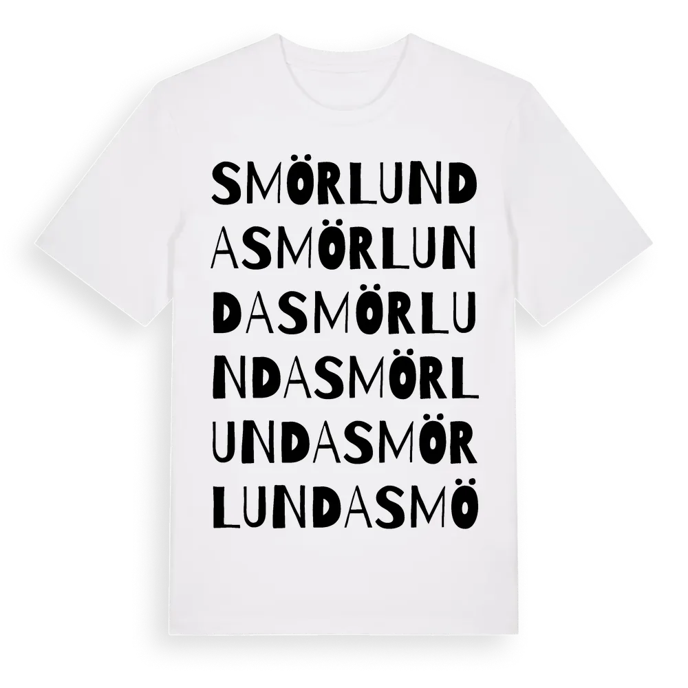 Smörlunda ordlek t-shirt är inspirerad av Smörlunda i Västerbottens län, Sverige. Tröjan är designad för dig som har en speciell koppling till platsen – oavsett om du bor här, har rötterna här eller bara älskar Smörlunda.