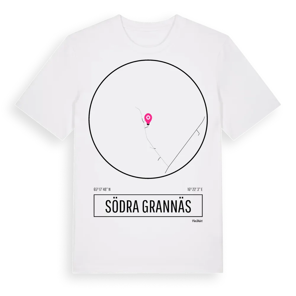 Södra Grannäs t-shirt är inspirerad av byn Södra Grannäs i Västerbottens län, Sverige. Tröjan är designad för dig som har en speciell koppling till platsen – oavsett om du bor här, har rötterna här eller bara älskar Södra Grannäs.