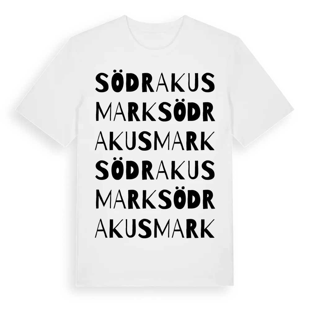 Södra Kusmark ordlek t-shirt är inspirerad av byn Södra Kusmark i Västerbottens län, Sverige. Tröjan är designad för dig som har en speciell koppling till platsen – oavsett om du bor här, har rötterna här eller bara älskar Södra Kusmark.