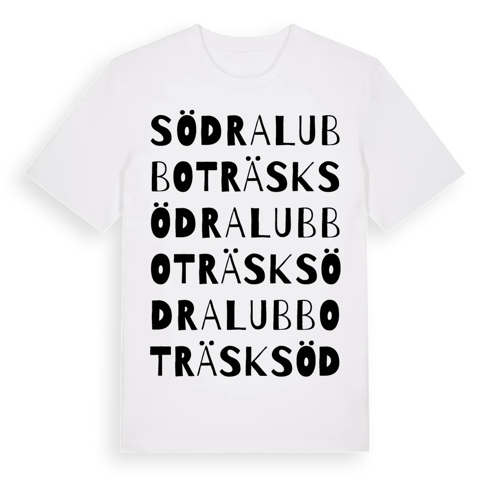 Södra Lubboträsk ordlek t-shirt är inspirerad av byn Södra Lubboträsk i Västerbottens län, Sverige. Tröjan är designad för dig som har en speciell koppling till platsen – oavsett om du bor här, har rötterna här eller bara älskar Södra Lubboträsk.