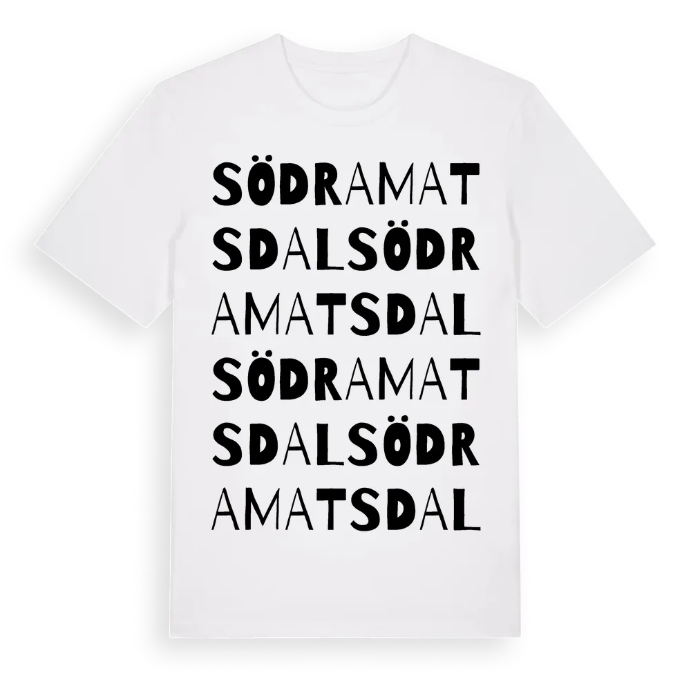 Södra Matsdal ordlek t-shirt är inspirerad av byn Södra Matsdal i Västerbottens län, Sverige. Tröjan är designad för dig som har en speciell koppling till platsen – oavsett om du bor här, har rötterna här eller bara älskar Södra Matsdal.