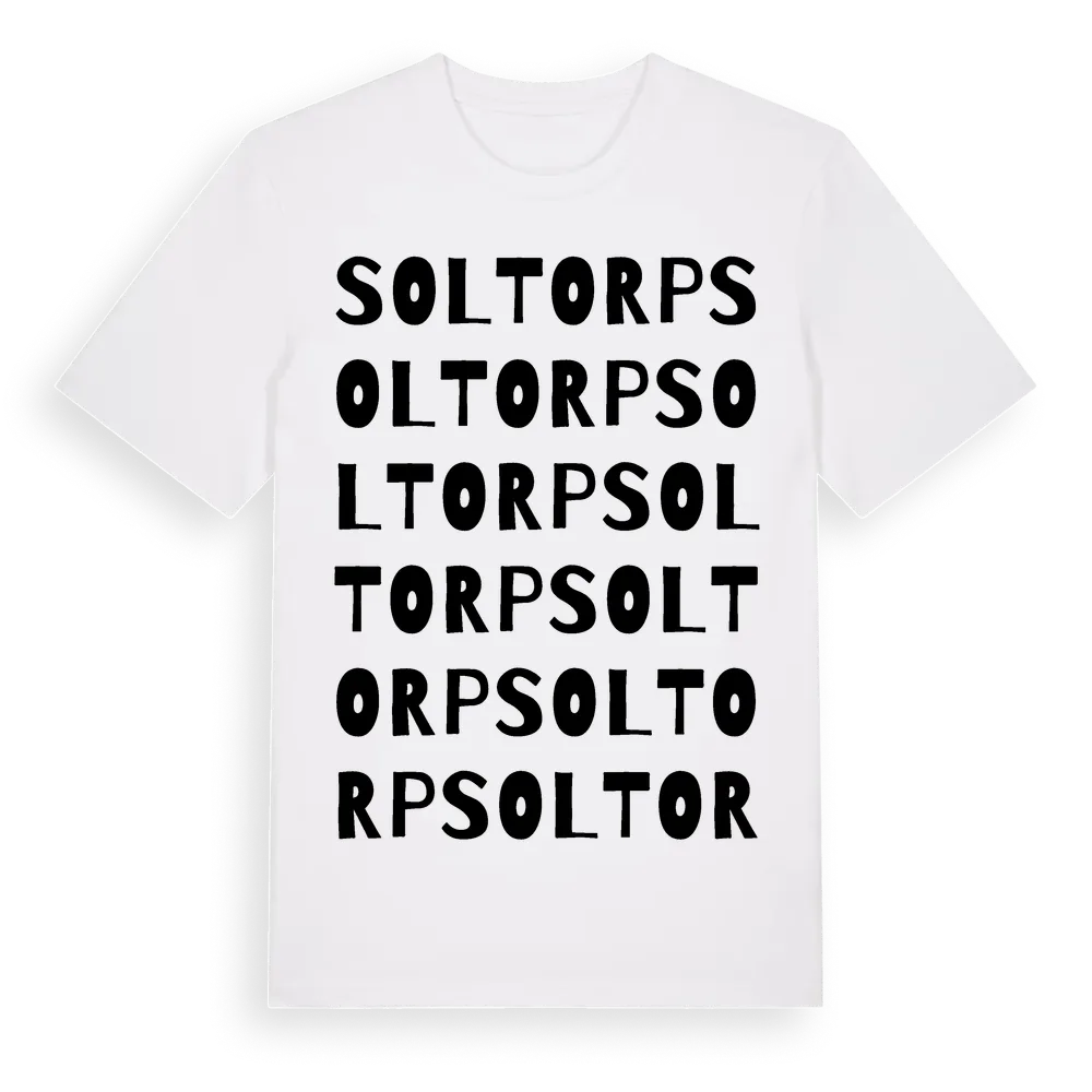Soltorp ordlek t-shirt är inspirerad av Soltorp i Västerbottens län, Sverige. Tröjan är designad för dig som har en speciell koppling till platsen – oavsett om du bor här, har rötterna här eller bara älskar Soltorp.