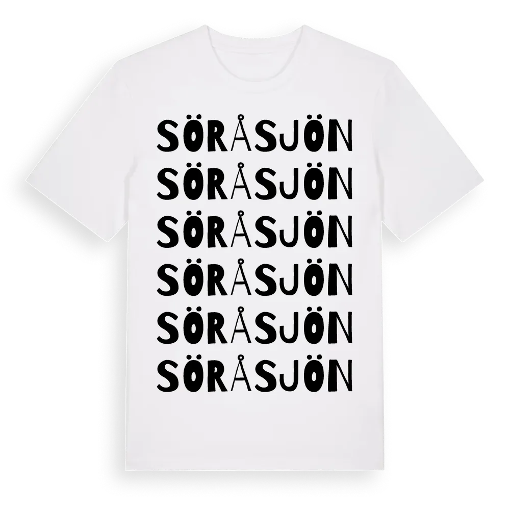 Sör Å Sjön ordlek t-shirt är inspirerad av Sör Å Sjön i Västerbottens län, Sverige. Tröjan är designad för dig som har en speciell koppling till platsen – oavsett om du bor här, har rötterna här eller bara älskar Sör Å Sjön.