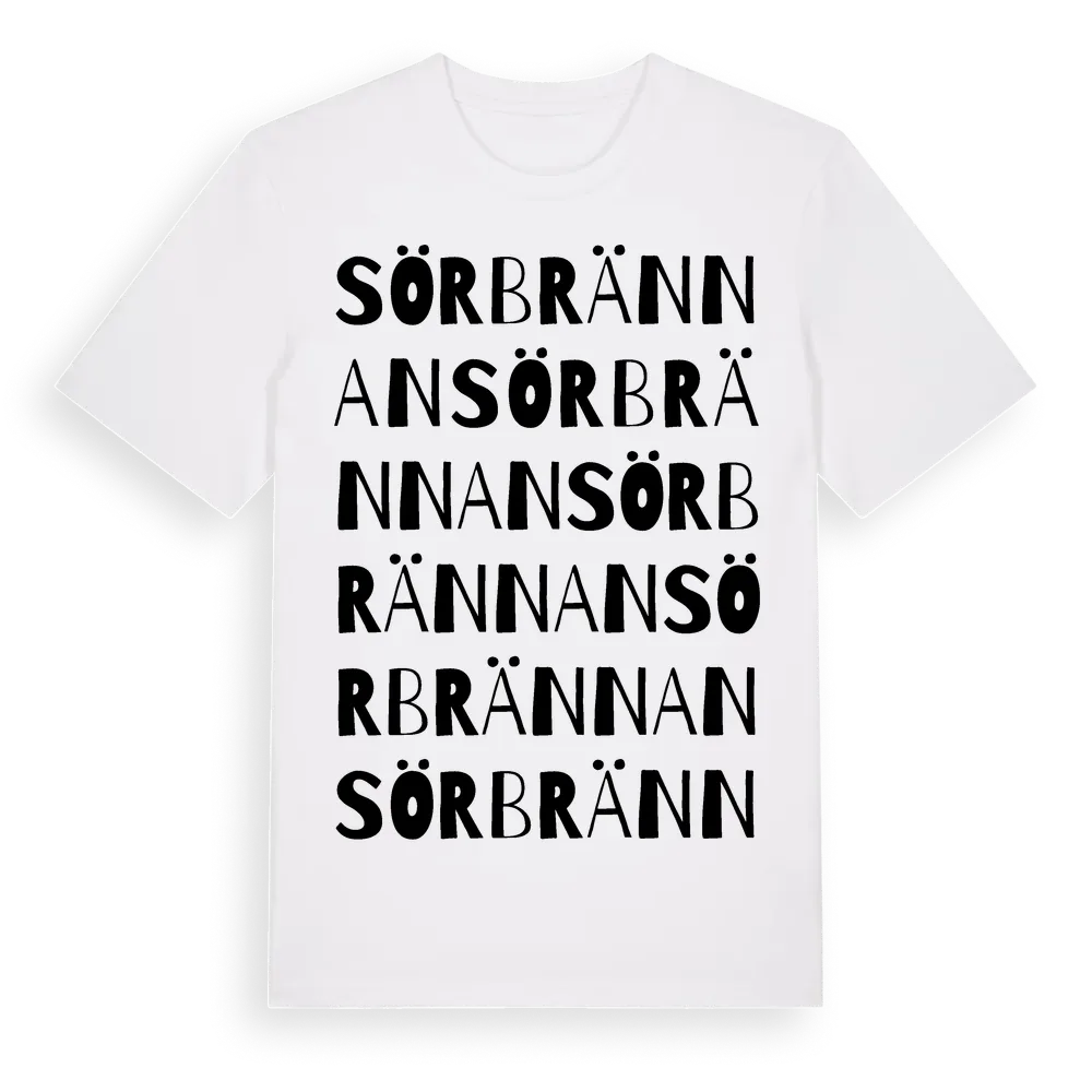 Sörbrännan ordlek t-shirt är inspirerad av Sörbrännan i Västerbottens län, Sverige. Tröjan är designad för dig som har en speciell koppling till platsen – oavsett om du bor här, har rötterna här eller bara älskar Sörbrännan.