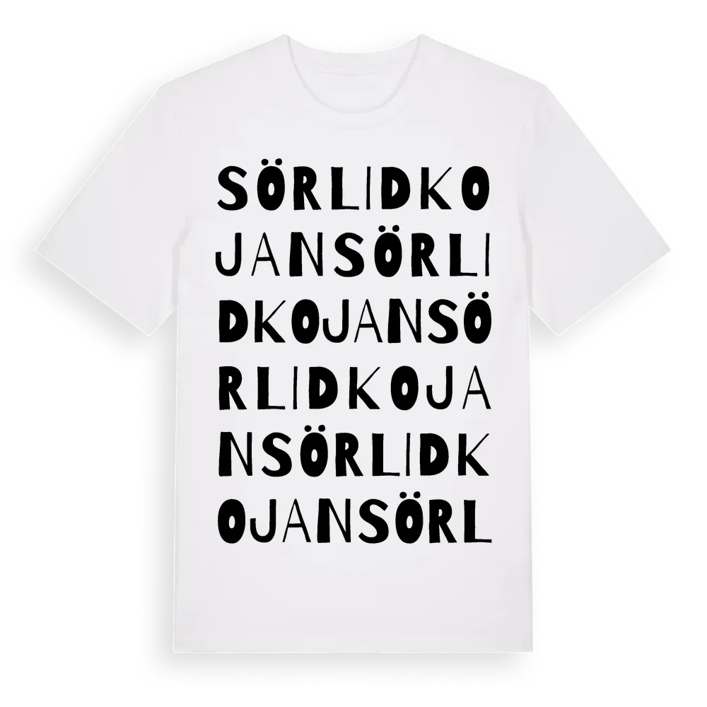 Sörlidkojan ordlek t-shirt är inspirerad av Sörlidkojan i Västerbottens län, Sverige. Tröjan är designad för dig som har en speciell koppling till platsen – oavsett om du bor här, har rötterna här eller bara älskar Sörlidkojan.