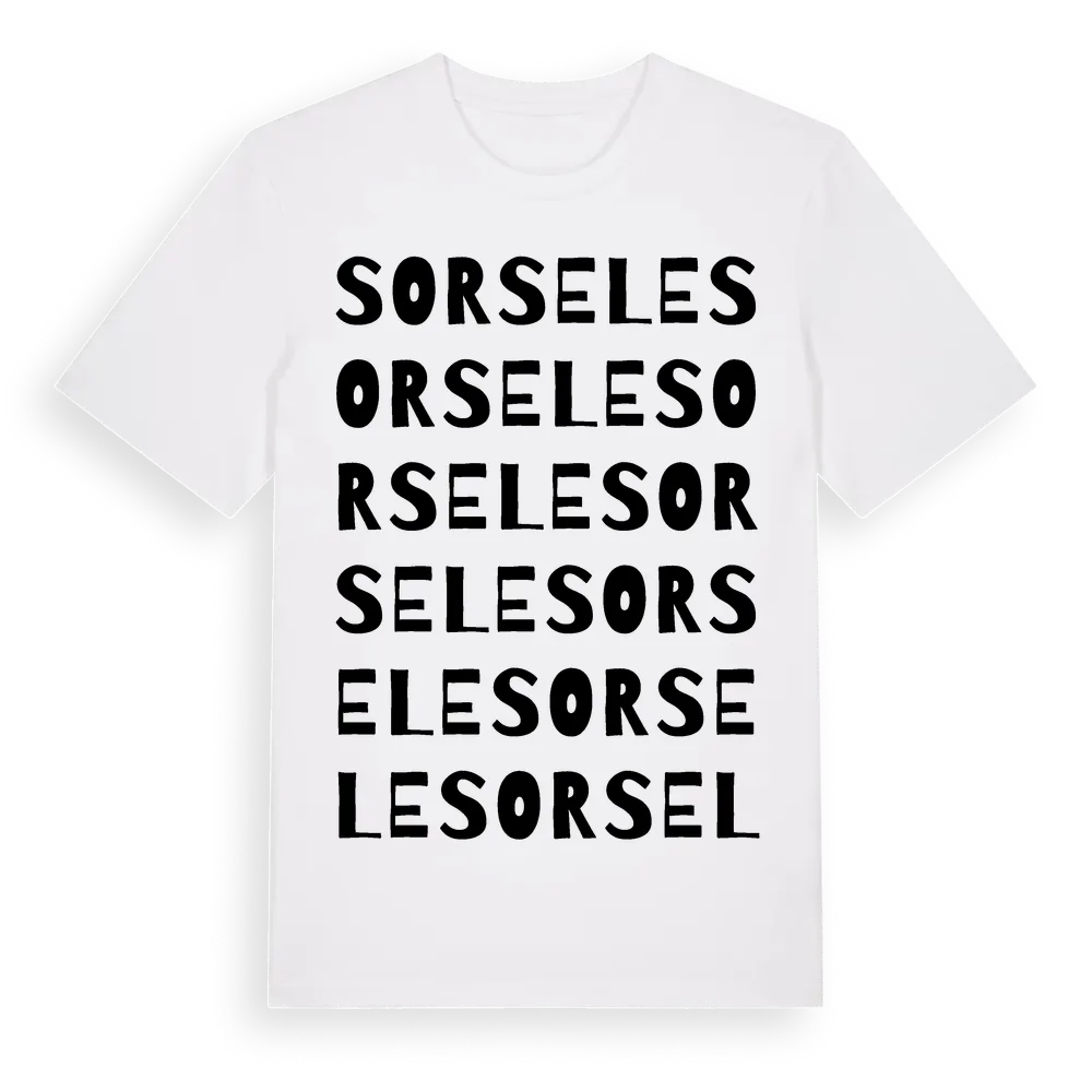 En ordlek byggd på Sorseles namn. Subtilt och klurig – ett motiv som bara de som verkligen känner platsen fullt ut förstår. Premium bomull, unisex – från staden Sorsele i Västerbottens län.