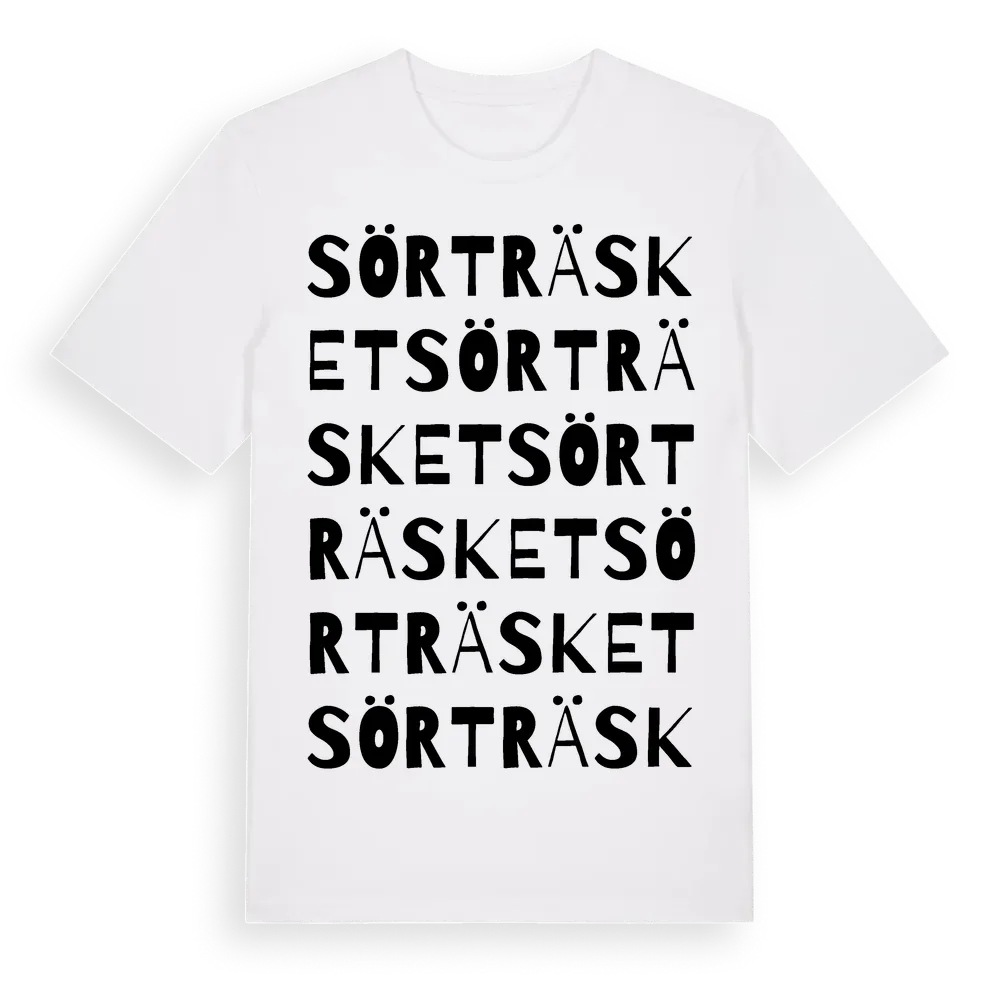 Sörträsket ordlek t-shirt är inspirerad av byn Sörträsket i Västerbottens län, Sverige. Tröjan är designad för dig som har en speciell koppling till platsen – oavsett om du bor här, har rötterna här eller bara älskar Sörträsket.