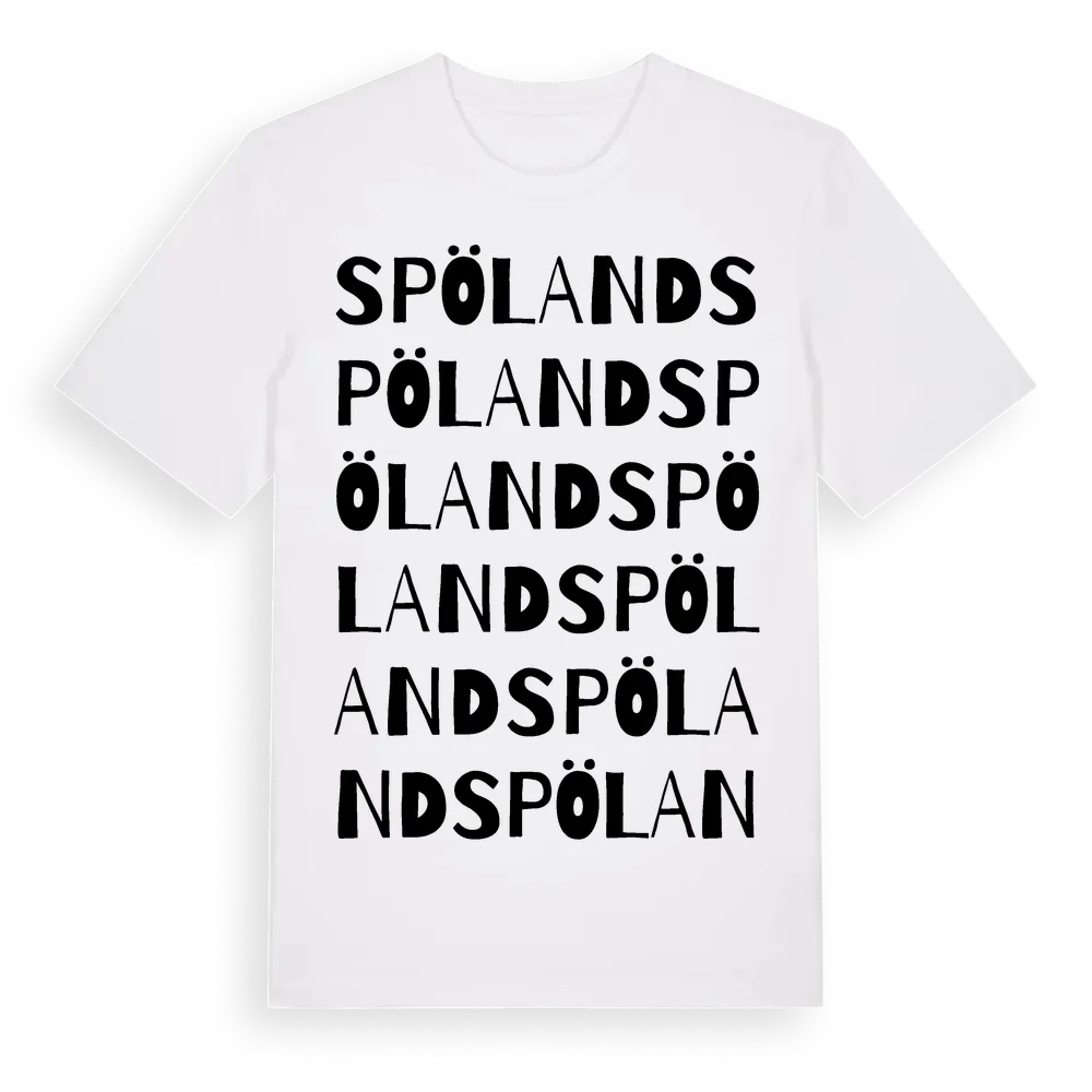 Spöland ordlek t-shirt är inspirerad av byn Spöland i Västerbottens län, Sverige. Tröjan är designad för dig som har en speciell koppling till platsen – oavsett om du bor här, har rötterna här eller bara älskar Spöland.