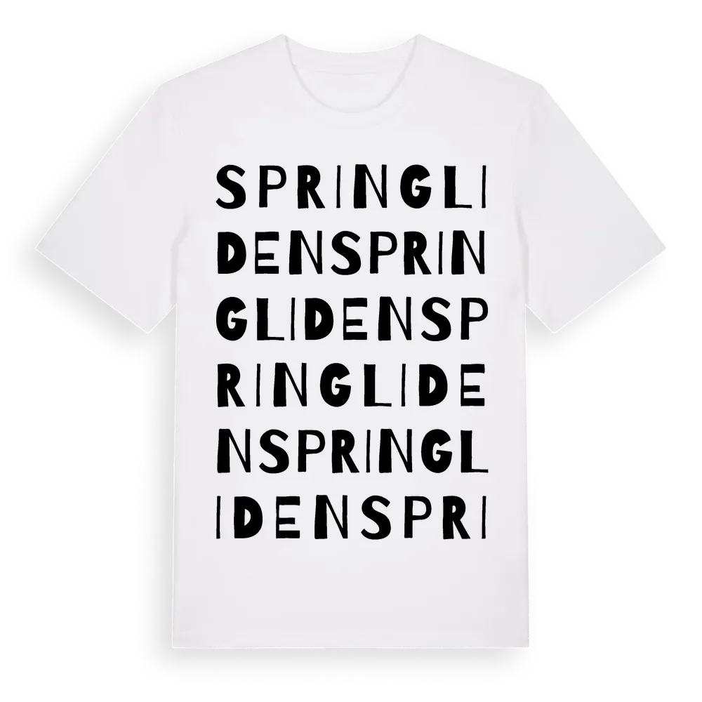Springliden ordlek t-shirt är inspirerad av byn Springliden i Västerbottens län, Sverige. Tröjan är designad för dig som har en speciell koppling till platsen – oavsett om du bor här, har rötterna här eller bara älskar Springliden.