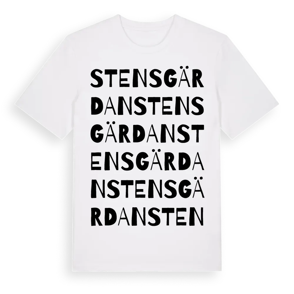 Stensgärdan ordlek t-shirt är inspirerad av Stensgärdan i Västerbottens län, Sverige. Tröjan är designad för dig som har en speciell koppling till platsen – oavsett om du bor här, har rötterna här eller bara älskar Stensgärdan.